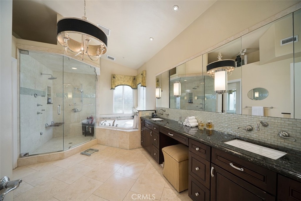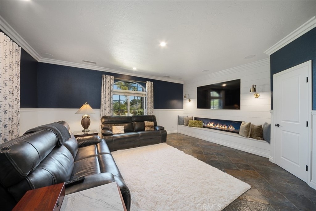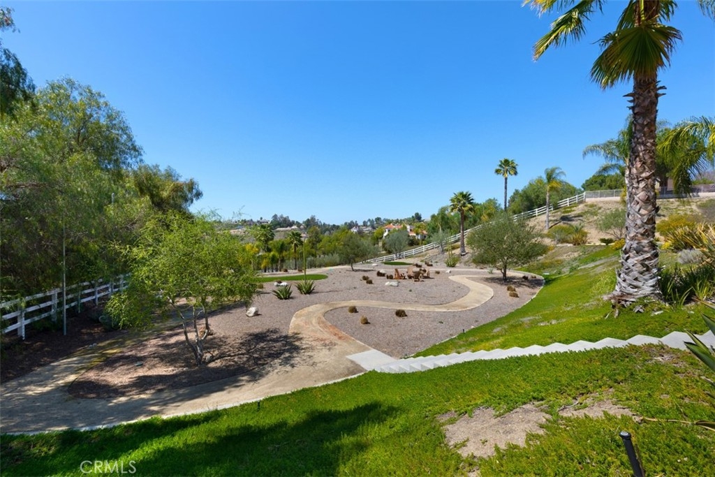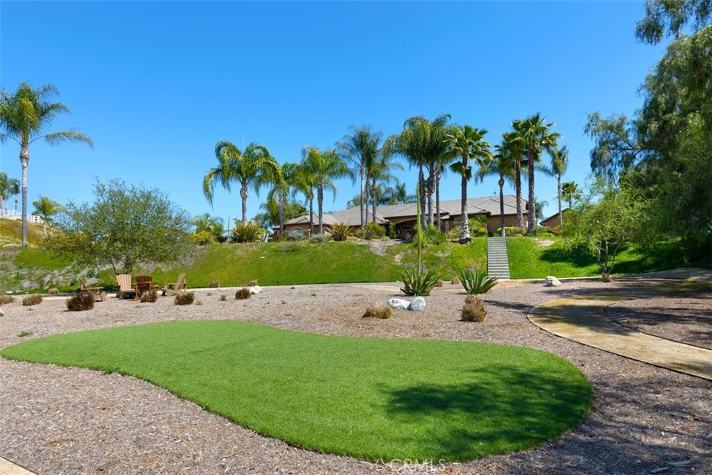 Stunning Custom Built Single Level home sitting at the end of a private street in the desirable community of Santiago Estates. Live on acreage just minutes from Old Town Temecula, Wine Country, Pechanga Casino, shopping, and freeway access. One of a handful of custom home areas with such access. Add in commanding views, low taxes, no special assessments, and no HOA dues and... you've found home! A true custom home & floorplan with no shortage of upgrades from new glass front doors, custom lighting throughout, vaulted ceilings, window coverings, Hardwood & Slate flooring, and plenty of additional treatments. Relax in the spa or take a dip in the pool while you enjoy the amazing view. Fire up one of two BBQ's in the fully covered outdoor entertainment area. There are several putting and chipping areas set up for the golf enthusiast. Enjoy chilly evenings in front of one of two indoor fireplaces or on a cool summer evening by the firepit. Need room for your car collection? Covered garage space for 7 vehicles plus fully covered RV parking large enough to accommodate a 45 foot diesel pusher with room to spare. Inside the home features include a built-in 75” Samsung “smart TV” / entertainment system & theatre style surround sound, custom kitchen cabinetry, professional designer treatments, Samsung freezer and individual Samsung Smart refrigerator w/ interior blue tooth camera, Carrara marble countertop, Villroy & Bosch Black Fireclay Farm Sink plus an additional prep sink in the island, and new black Stainless Appliances. The main house features 4 bedrooms, a total of 2 suites. Need room for guests? There's a private one bedroom, 500 square foot Casita with full bath, kitchenette, plus it's own private veranda. There's a large dining area in the kitchen in addition to a formal dining room, living room, and an amazing bonus room, approximately 500 square foot of living & dining space.